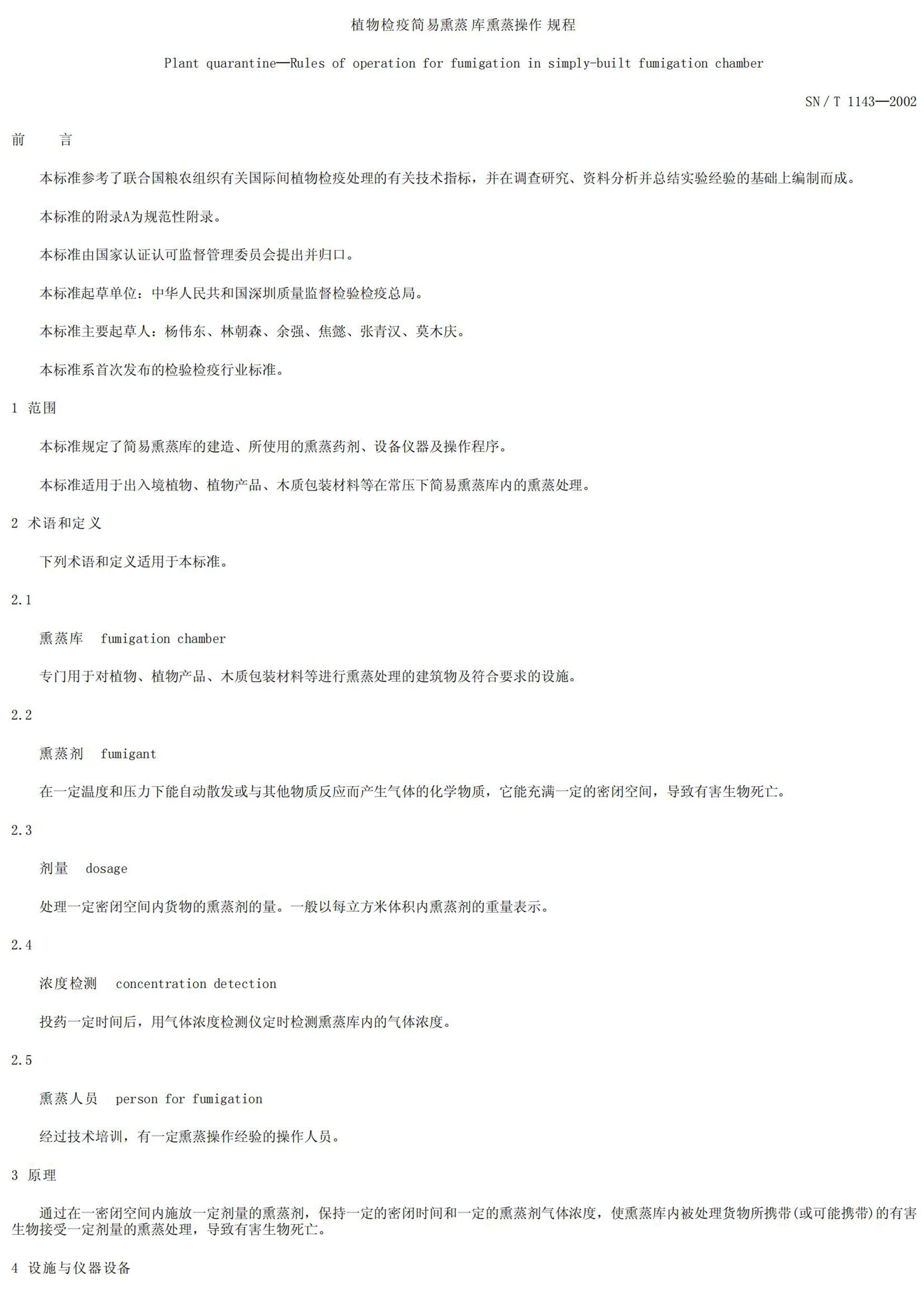 植物檢疫熏蒸庫熏蒸操作規(guī)程(NT1143-2002)